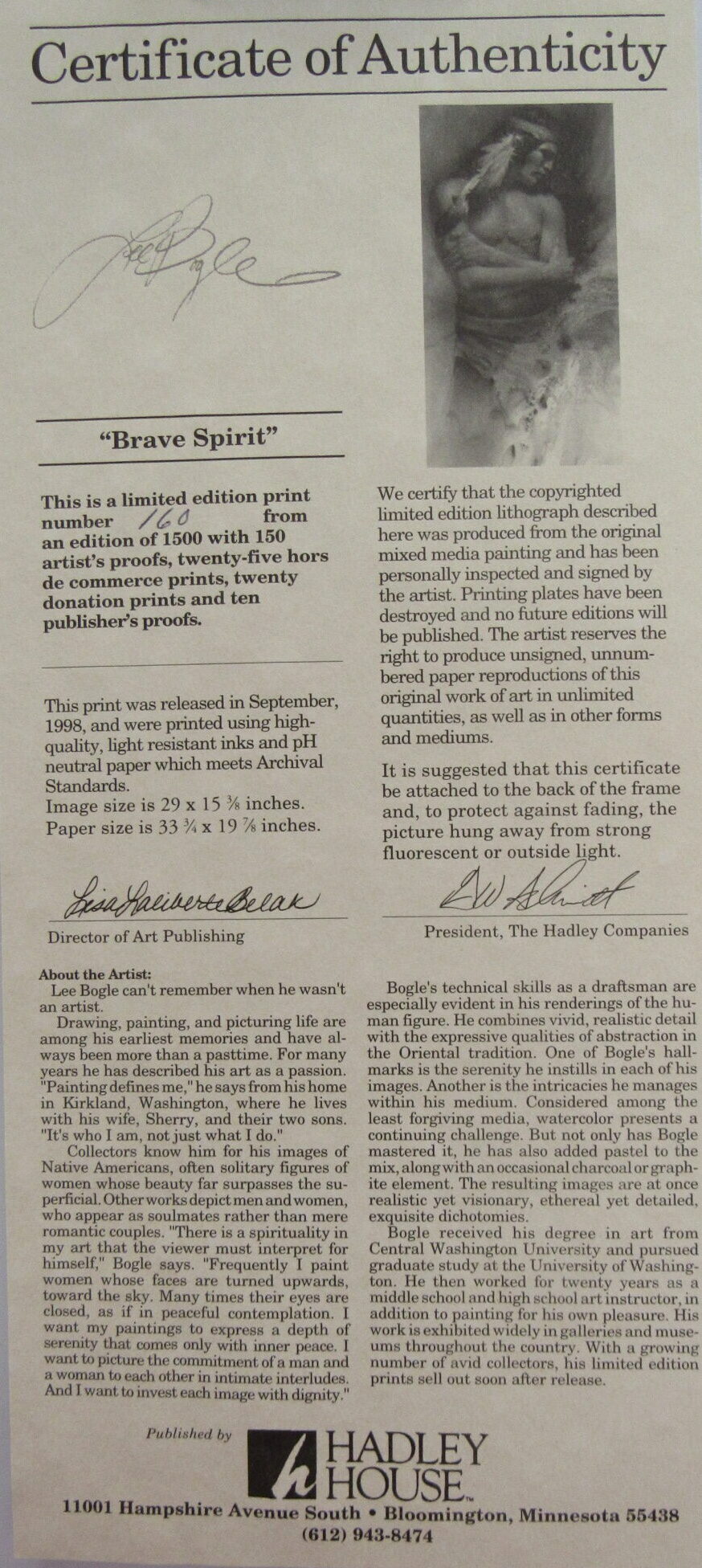 “Brave Spirit” by Lee Bogle – Signed Limited Edition Glossy Art Print 33¾x19⅞ with Certificate – Fine Art Collectible